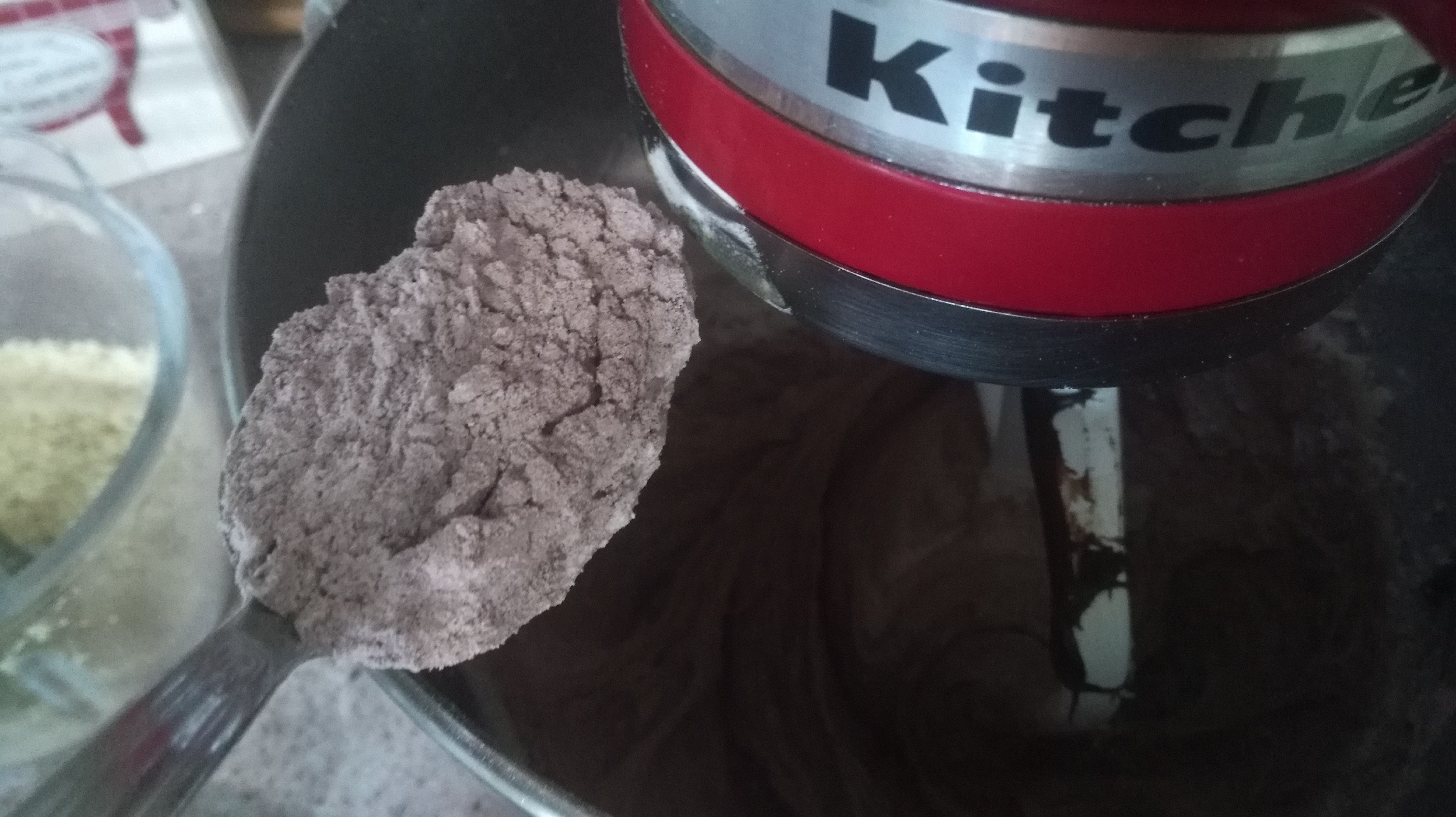 Tritate finemente le nocciole tostate. Sciogliete il cioccolato fondente a bagnomaria o in microonde per pochi secondi. Montate a crema la margarina e lo zucchero. Unite le uova, il cioccolato fuso, il latte e la polveri setacciate (cacao, farina e lievito).